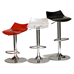 Height adjustable seat available in white, red and black transparent plexiglass.