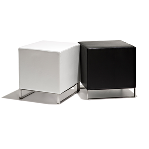 The stool is available in white and black.