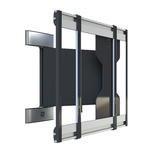 Fästet bygger endast 33 mm från väggen i infällt läge. Skruvhålen är M4, M5, M6 samt M8.