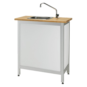 Innehåll Vasken har vita sidor och är förberedd för vatten- och avloppskoppling.