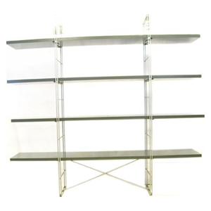 Innehåll Vitlackerad metallram med vitlackerade trähyllor.