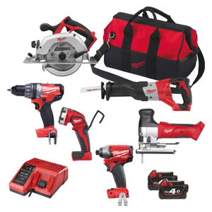 HD18 PP6A-402B slagborrmaskin, tigersåg, cirkelsåg, sticksåg, slagskruvdragare och lampa.